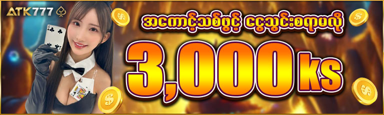 မြန်မာနိုင်ငံအတွက် အကောင်းဆုံး အွန်လိုင်းကာစီနိုဝဘ်ဆိုဒ် ATK777 အကောင့်သစ်ဖွင့် ငွေသွင်းစရာမလို FREE 3,000 ကျပ်ယူလိုက်ပါ