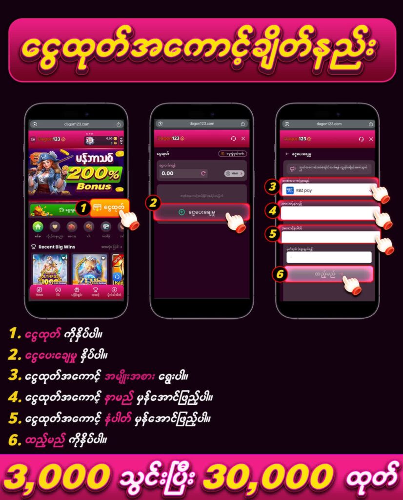 - ငွေထုတ်ခြင်းကို လုံခြုံပြီး အချိန်တိုအတွင်း ပြီးမြောက်စေရန် လမ်းညွှန်ပေးထားသည် ။ ငွေသွင်းနည်းများနှင့် လုံခြုံရေးအချက်များပါဝင်ပြီး စိတ်ချစွာအသုံးပြုနိုင်မယ် ။